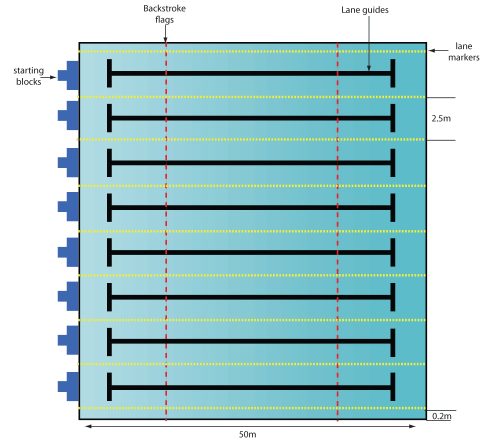 國際上所有的主(zhǔ)要(yào)賽道全部由人工設計建造(zào),要保證能將(jiāng)風力和(hé)波浪(làng)對比賽的影響減至最小。悉尼賽道為標準2000米淺水賽道,這是從總長超過2300米的水道(dào)上截選出來的。整條賽道包括9條比賽航道,但隻(zhī)有6條可用於比賽。單條航道寬13.5米,用彩色浮標隔開(kāi)。各浮標點水深均不少於3.5米(mǐ)。